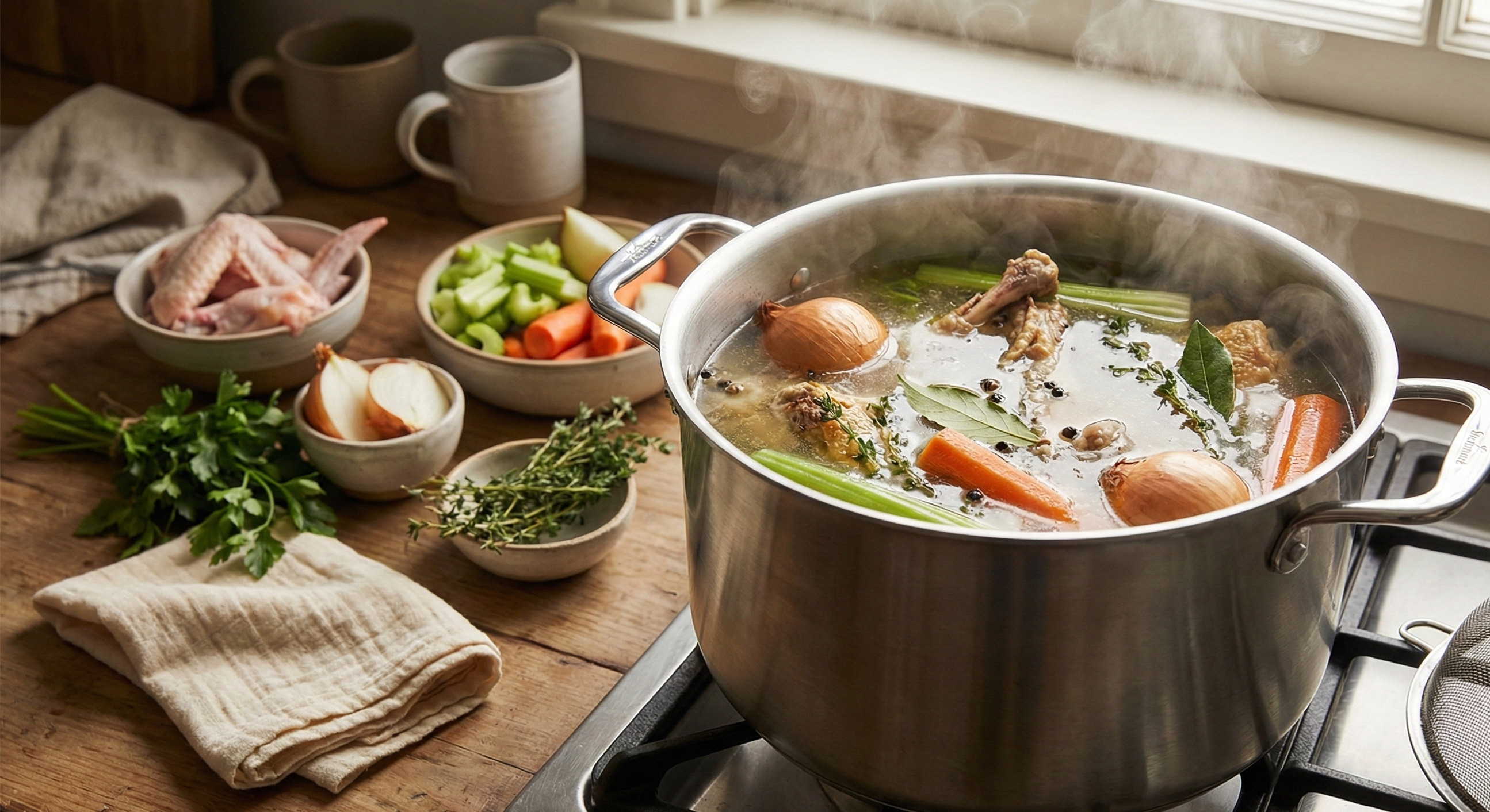 - Gentle simmer only: boiling makes stock cloudy and can taste “muddy.”