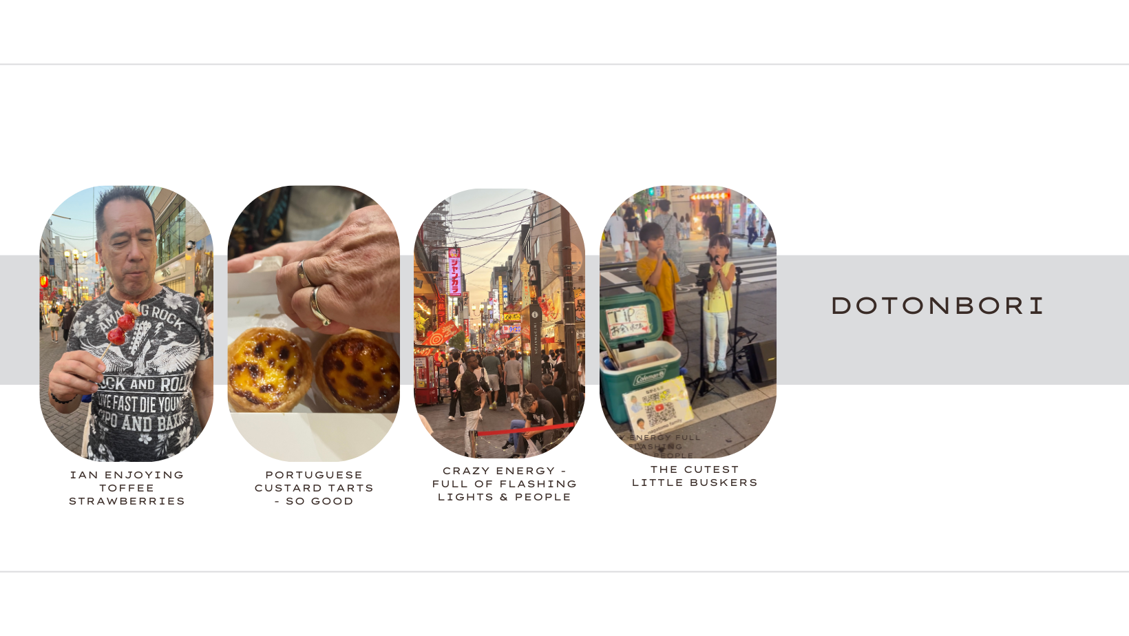 The street is alive with buskers, and we couldn’t get enough. Two of the cutest kids were performing, a young man showed off some amazing tap dancing, and there were incredible feats with ball skills. One highlight was a young performer singing “Sukiyaki”, the song Mum used to sing to us — beautifully done and such a special connection to our past.