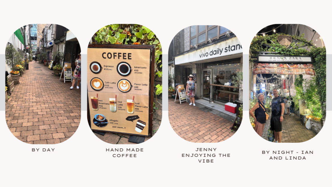 We stumbled upon this little lane in Nakano near where we were staying - Rengazaka Street, and instantly fell in love. Cozy cafés, old-school bars, and traditional restaurants line the street, and the glow from street lamps and fairy lights gives it a quiet, magical energy. We stopped for morning tea—an amazing coffee (yes, real coffee - hand made) and a perfectly delicate peach tart - and for a moment, Tokyo felt far away. It’s one of those hidden spots where the city slows down, and you can just breathe, soak it in, and feel its timeless heart.