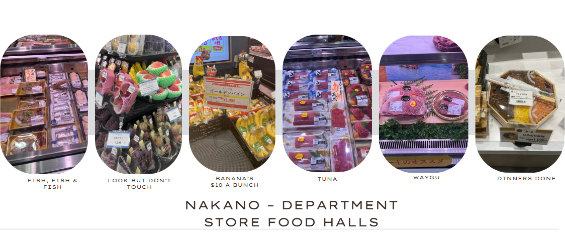 We wandered into the closest department store food hall in Nakano and were immediately blown away. From the street, you could already sense the quality, prestige, and glamour inside. Walking through the doors, we were greeted by bunches of stunning flowers and arrangements, fresh baked goods being packaged for hungry shoppers, beautiful gift packs setting the tone before even reaching the food halls below.