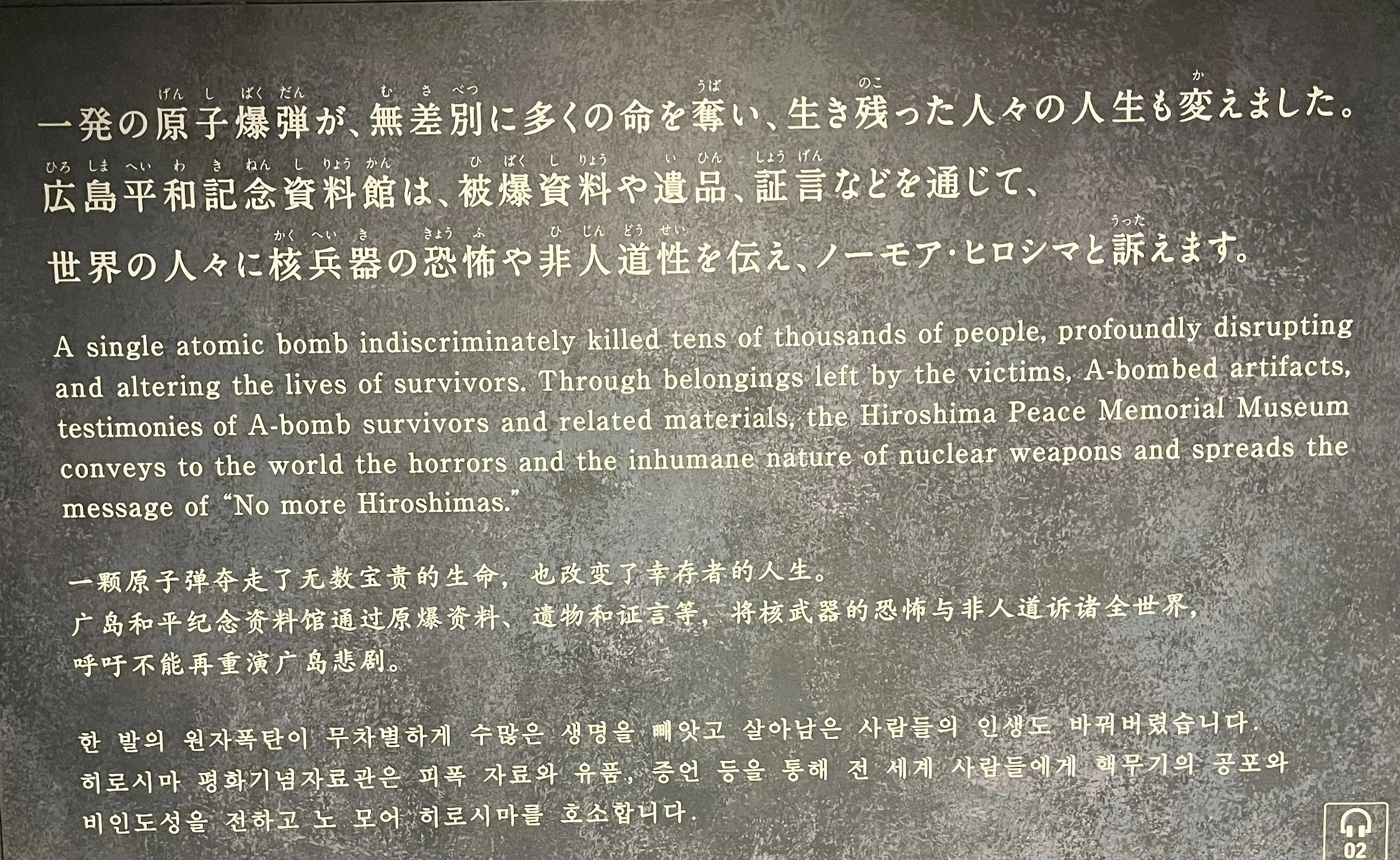 At 8:29 a.m., messages followed from Japan’s Prime Minister, the Governor of Hiroshima, and the Secretary-General of the United Nations, all calling for unity and lasting peace.