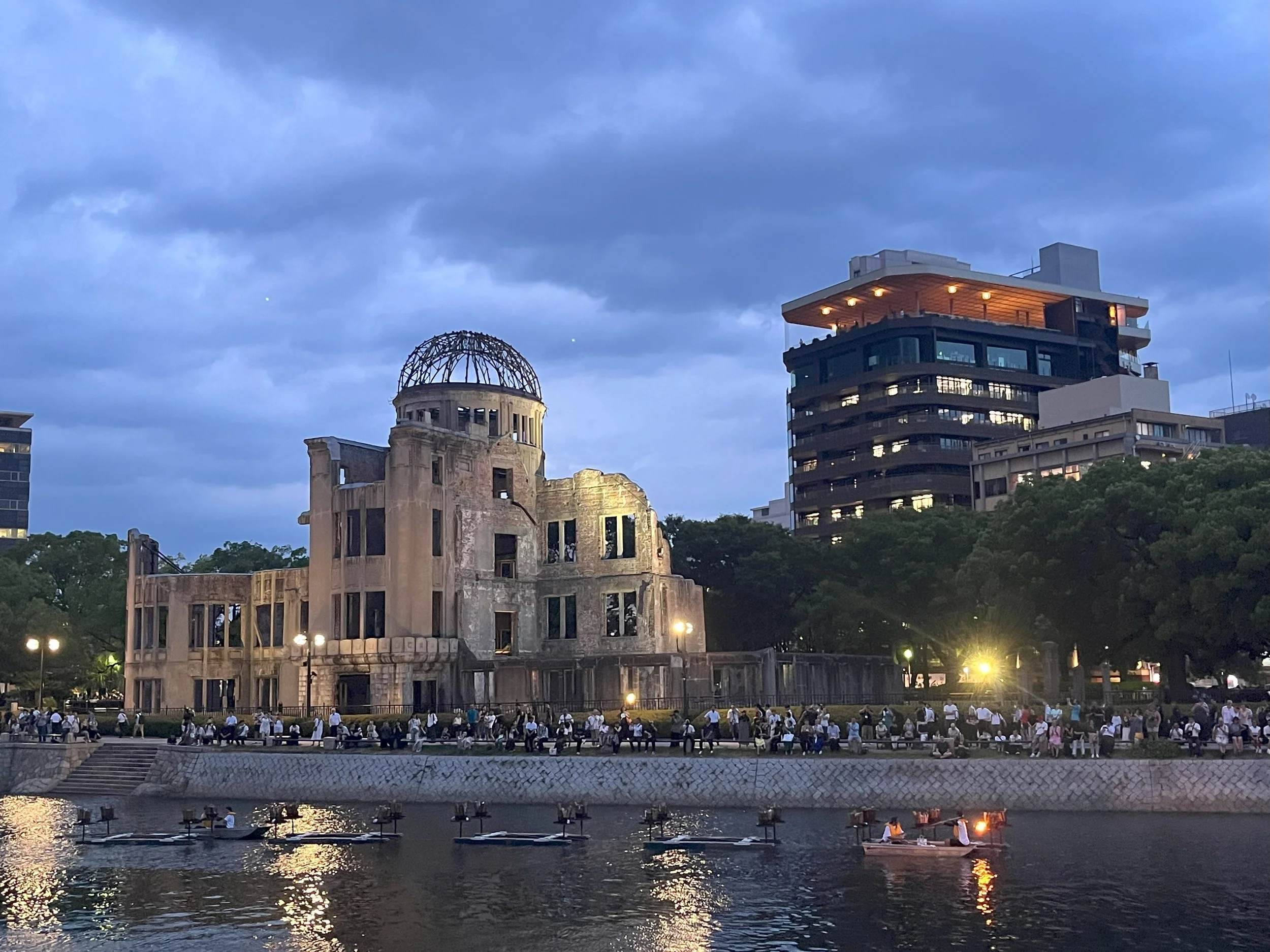 As evening fell over Hiroshima, the city seemed to take a collective breath. After the solemnity of the morning ceremony, the night brought a different kind of emotion — softer, reflective, but just as powerful.