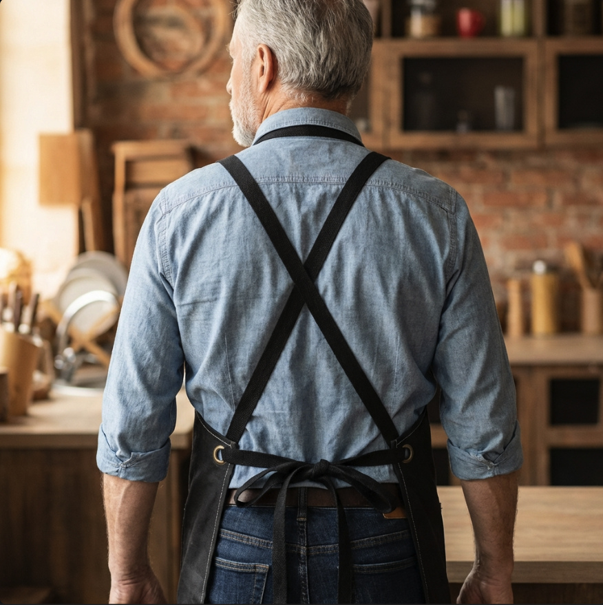 (CMS tip: if your apron fabric is treated/coated, call it “water-resistant/oil-resistant finish” rather than “fully waterproof” unless you’ve got supplier specs that confirm true waterproofing.)
