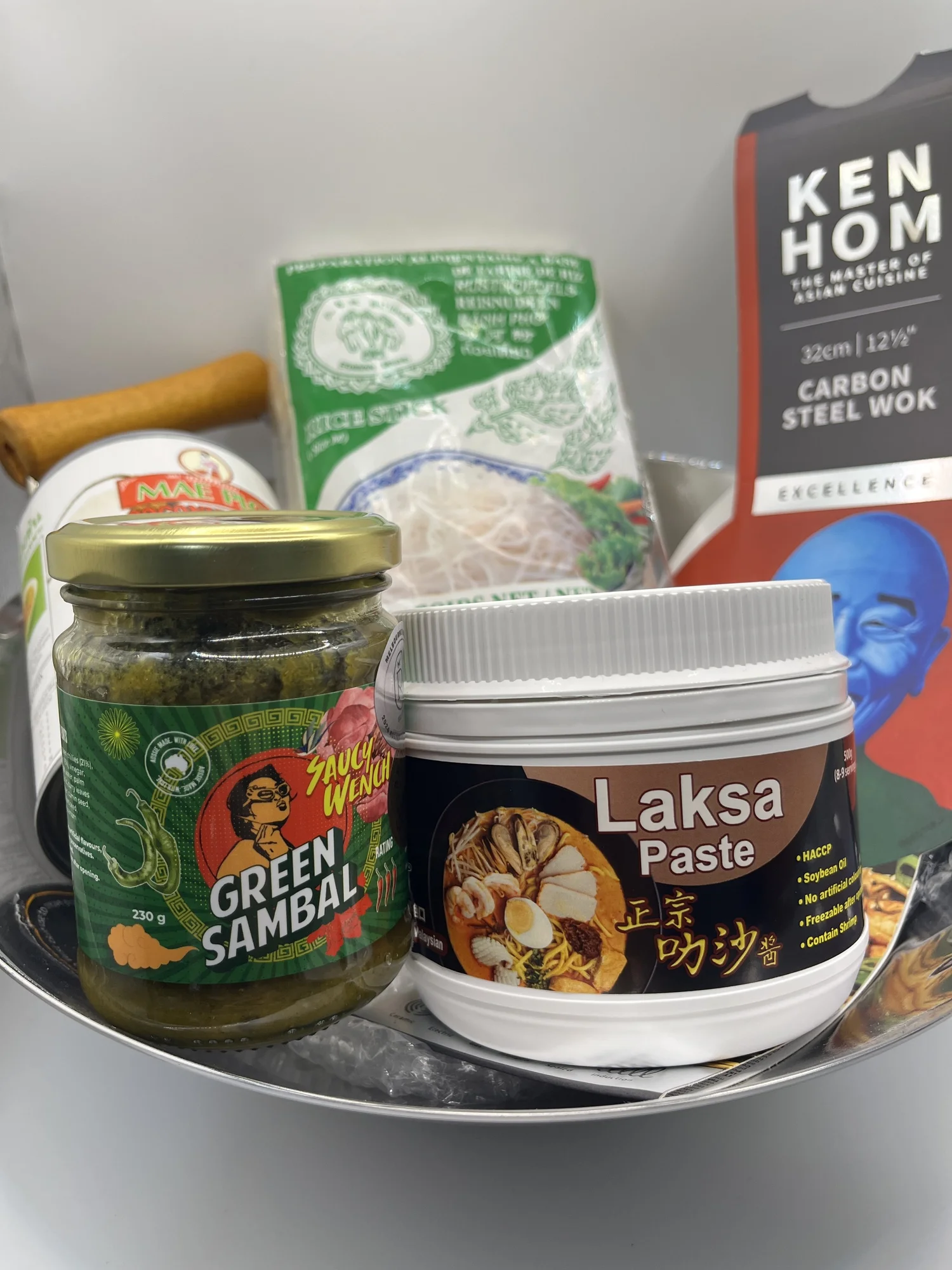 Ken Hom Wok + Laksa Paste + Coconut Milk + Rice Noodles + Green Sambal